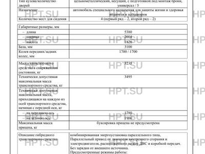 Описание гибридного ТС комбинированная энергоустановка параллельного типа, Параллельный привод от двигателя внутреннего сгорания и электродвигателя, расположенного между ДВС и коробкой передач. Без зарядки от внешнего источника. Предусмотренные режимы работы: - запуск ДВС электродвигателем; - только двигатель внутреннего сгорания; - совмещенный (одновременный привод от двигателя внутреннего сгорания и электродвигателя); - режим заряда аккумуляторной батареи от двигателя внутреннего сгорания. Состав высоковольтной системы: высоковольтная аккумуляторная батарея, электрическая машина, инвертор со встроенным преобразователем напряжения, преобразователь напряжения на 12 В