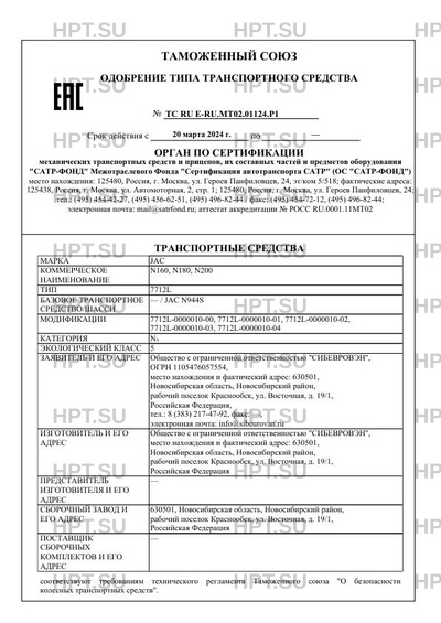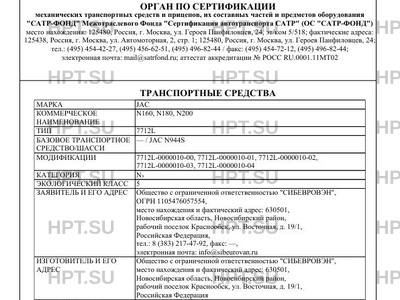 | Заявитель | Общество с ограниченной ответственностью "СИБЕВРОВЭН", ОГРН 1105476057554, место нахождения и фактический адрес: 630501, Новосибирская область, Новосибирский район, рабочий поселок Краснообск, ул. Восточная, д. 19/1, Российская Федерация, тел.: 8 (383) 217-47-92, факс: -, электронная почта: info@sibeurovan.ru |