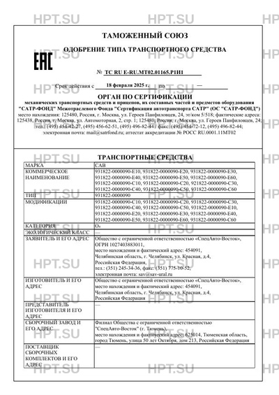 | Номер документа | ТС RU Е-RU.МТ02.01165.Р1И1 |