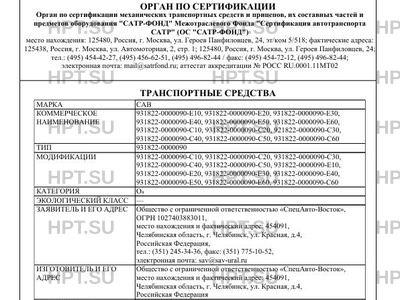 | Заявитель | Общество с ограниченной ответственностью «СпецАвто-Восток», ОГРН 1027403883011, место нахождения и фактический адрес: 454091, Челябинская область, г. Челябинск, ул. Красная, д.4, Российская Федерация, тел.: (351) 245-34-36, факс: (351) 775-10-52, электронная почта: sav@sav-ural.ru |