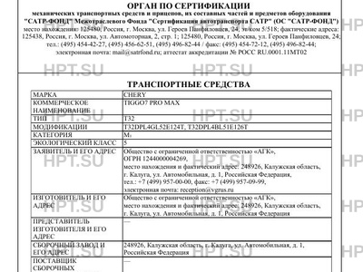 | Коммерческое наименование | TIGGO7 PRO MAX |