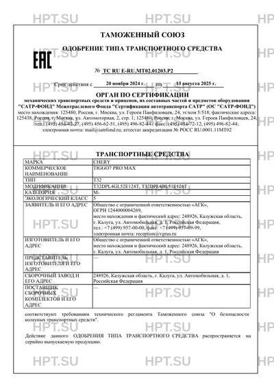 | Коммерческое наименование | TIGGO7 PRO MAX |