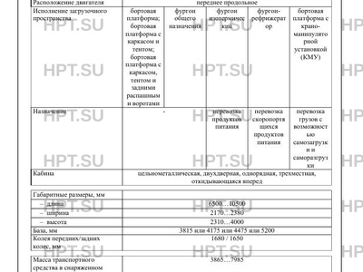 | Оборудование ТС | устройство вызова экстренных оперативных служб с функцией автоматического срабатывания при опрокидывании; холодильная установка для 7772Y-03; дневные ходовые огни по заказу: тахограф; грузоподъемный борт; обтекатель, устанавливаемый на крышу кабины; автономный отопитель кабины; предпусковой подогреватель двигателя |