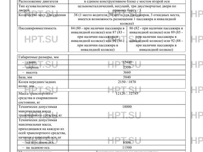 | Оборудование ТС | устройство вызова экстренных оперативных служб с автоматическим срабатыванием при опрокидывании; кондиционер; система отопления салона по заказу: телематическое оборудование, АСМПП (автоматизированная система мониторинга пассажиропотока) |
