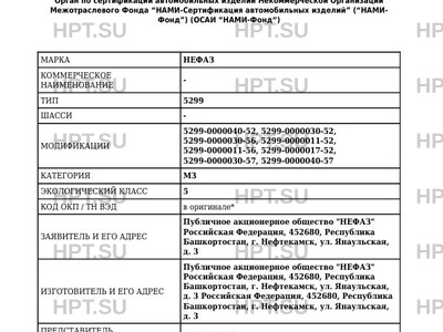 Заявитель Публичное акционерное общество "НЕФАЗ". Российская Федерация, 452680, Республика Башкортостан, г. Нефтекамск, ул. Янаульская, д. 3. ОГРН: 1020201881116. Тел. 7 (34783) 2-35-61. Факс +7 (34783) 2-32-16. Email nefaz@nefaz.ru.
