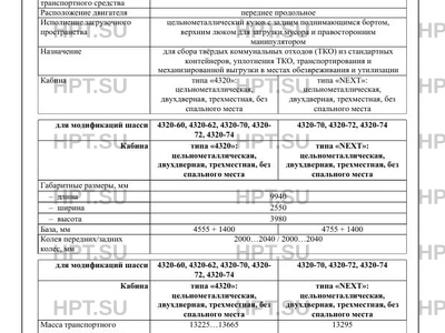 Оборудование ТС централизованная система регулирования давления воздуха в шинах; устройство вызова экстренных оперативных служб с функцией автоматического срабатывания при опрокидывании; устройство ограничения максимальной скорости (функцию устройства ограничения максимальной скорости выполняет электронный блок управления двигателем); дневные ходовые огни (для модификаций с кабиной типа NEXT); фара освещения рабочей зоны - 1 шт. или 2 шт.; маяк проблесковый оранжевого или жёлтого цвета - 2 шт.; по заказу: предпусковой подогреватель двигателя; лебёдка; передние противотуманные фары (для модификаций с кабиной типа 4320)