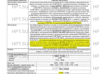 | Коммерческое наименование | мусоровоз с КМУ или без UMCMG3, автомобиль-сортиментовоз с КМУ UMCMS3, автомоби… |