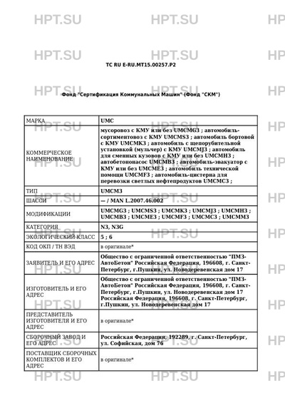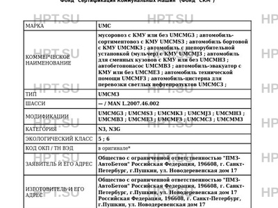 | Коммерческое наименование | мусоровоз с КМУ или без UMCMG3; автомобильсортиментовоз с КМУ UMCMS3; автомобил… |