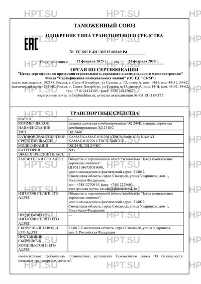 | Номер документа | ТС RU Е-RU.МТ15.00269.Р4 |