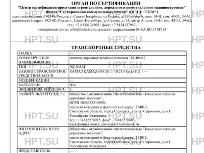 | Коммерческое наименование | машина дорожная комбинированная ЭД 405АГ |