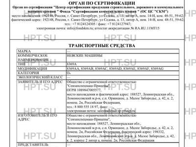 | Номер документа | ТС RU Е-RU.МТ15.00411.Р1 |