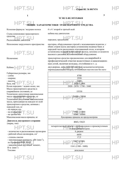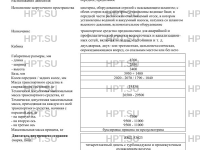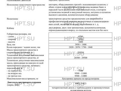 Исполнение загрузочного пространства переднее, продольное цистерна, оборудованная стрелой с всасывающим шлангом; с обеих сторон вдоль цистерны установлены водяные баки; в передней части расположен отапливаемый отсек, в котором установлены водяной и вакуумный насосы, катушка со шлангом высокого давления, вспомогательное оборудование
