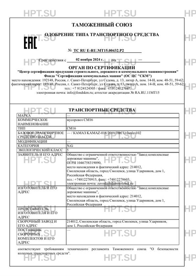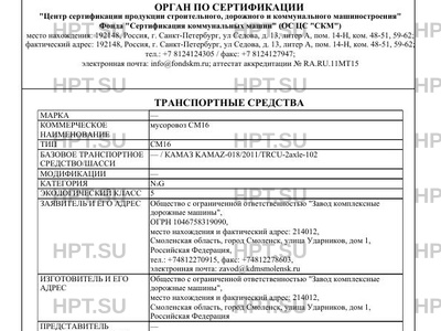 | Предприятие-изготовитель | Общество с ограниченной ответственностью "Завод комплексные дорожные машины", место нахождения и фактический адрес: 214012, Смоленская область, город Смоленск, улица Ударников, дом 1, Российская Федерация |