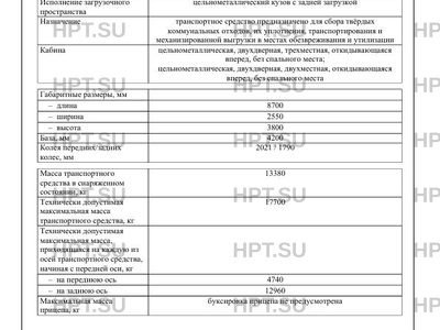 | Назначение | транспортное средство предназначено для сбора твёрдых коммунальных отходов, их уплотнения, транспортирования и механизированной выгрузки в местах обезвреживания и утилизации |