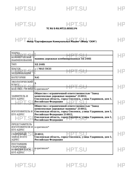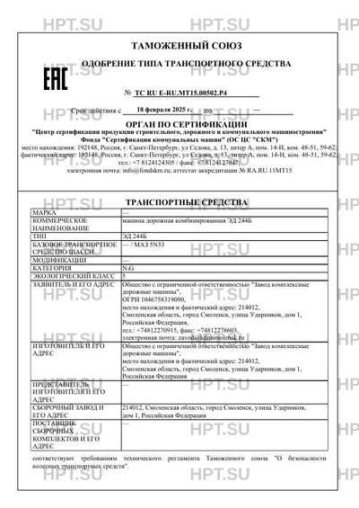 | Коммерческое наименование | машина дорожная комбинированная ЭД 244Б |
