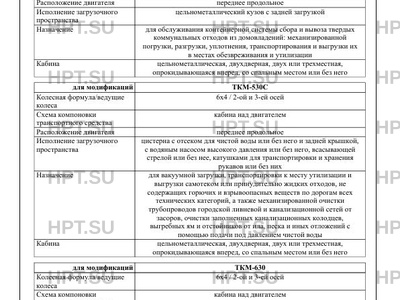 Коммерческое наименование Мусоровоз ТКМ-430, Машина комбинированная ТКМ-530С, Машина илососная ТКМ-630, В…