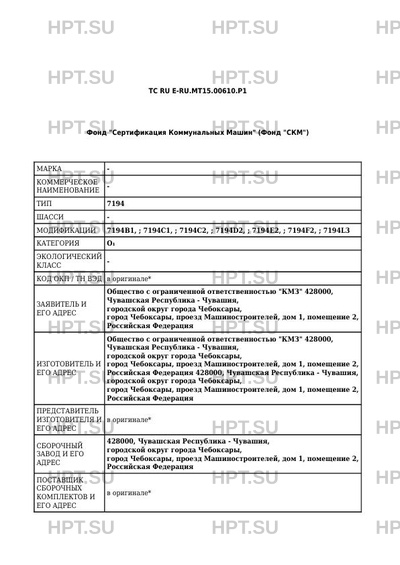| Номер документа | ТС RU Е-RU.МТ15.00610.Р1 |