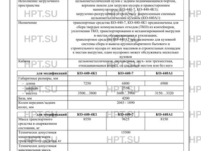 | Коммерческое наименование | мусоровоз КО-440-7, мусоровоз КО-440-4К1, мусоровоз портальный КО-440А1 |