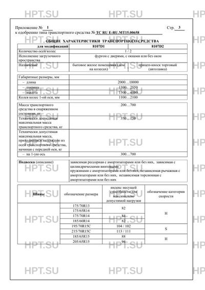 | Оборудование ТС | опорное колесо или стойка по заказу: домкрат; лебедка; трап; скамейки; подъемная или сдвижная крыша; торговое оборудование; шкафы; стеллажи; ящики; полки; умывальник, душ; плита; диван; кровать; маркиза; бортовой ввод для подключения к сети; складное или выдвижное, регулируемое по высоте дышло |