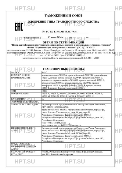 Коммерческое наименование прицеп автолавка 30209 A, прицеп бортовой 30209 В, прицеп бочка 30209 C, прицеп…