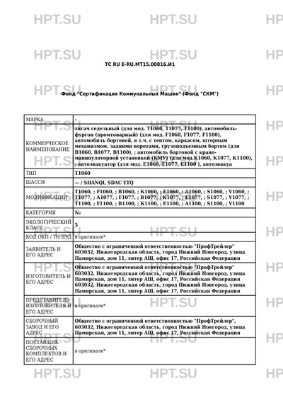 | Коммерческое наименование | тягач седельный (для мод. T1060, Т1077, Т1100), автомобильфургон (промтоварный)… |