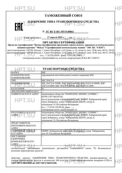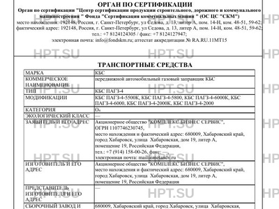 | Орган по сертификации | Орган по сертификации "Центр сертификации продукции строительного, дорожного и коммунального машиностроения" Фонда "Сертификация коммунальных машин" (ОС ЦС "СКМ") |