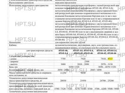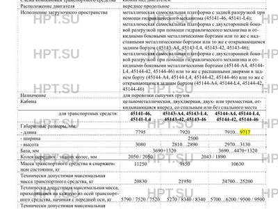 | Исполнение загрузочного пространства | металлическая самосвальная платформа с задней разгрузкой при помощи гидравлического механизма (45141-46, 45141-L4); металлическая самосвальная платформа с двухсторонней боковой разгрузкой при помощи гидравлического механизма и откидными боковыми металлическими бортами или то же с надставными металлическими бортами или то же с открывающимся задним бортом (45143-А4, 45143-L4, 45143-42, 45143-46); металлическая самосвальная платформа с двухсторонней боковой разгрузкой при помощи гидравлического механизма и откидными боковыми металлическими бортами (45144-А4, 45144- L4, 45144-42, 45144-46) или то же с распашными дверями в заднем борту (45144-А4, 45144-L4, 45144-42, 45144-46) или то же с открывающимся задним бортом (45144-А4, 45144-L4, 45144-42, 45144-46) |
