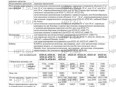 | Назначение | для перевозки грузов различного назначения (для 65224-4?, 6360-7?); для перевозки сыпучих и навалочных грузов (для 6520-??, 652 |
