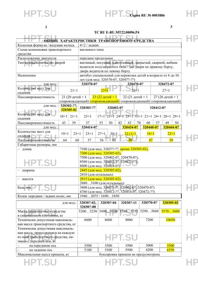 | Тип ТС | Категория транспортного средства: M3, автобус класса I-II – кроме мод. 320370-0?, 32047?-0? M3 автобус класса B – для мод. 320370-0?, 320470-?? M3 автобус класса III – для мод. 320472-?? Использование автобусов для перевозки пассажиров в междугородном сообщении допускается только для автобусов, оснащенных ремнями безопасности. Коммерческое наименование транспортных средств: Vector NEXT – для модификации 320305-02 |