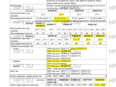 | Оборудование ТС | для всех модификаций: ремень безопасности на месте водителя и переднего пассажира, предпусковой подогреватель (для мод. 320???-04, 3204??-05). для модификаций 320414-0? (вариант планировки № 3), 320434-0?: подъемник для доступа и место для размещения инвалида в коляске. для модификаций 32044?-0?: аппарель для доступа и место для размещения инвалида в коляске. по заказу для всех мод. кроме 320?7?-0?: электрообогрев наружных зеркал, противотуманные фары, дневные ходовые огни, тахограф, устройство навигации ГЛОНАСС или аппаратура спутниковой навигации ГЛОНАСС/GPS, ремни безопасности на других пассажирских сиденьях, сиденье водителя повышенной комфортности, пассажирские сиденья повышенной комфортности, антивандальные сиденья, автономный отопитель, стекла с уменьшенным светопропусканием (кроме ветровых и передних боковых окон), стеклопакеты, радиоинформатор, автоинформатор, указатели маршрута, автоматизированная система учета оплаты проезда пассажира (АСУОПП), аудиосистема, подготовка под установку теле-видео аппаратуры, кондиционер (для мод. 3204??-0?), система пожаротушения, цвет металлик, устройство вызова экстренных оперативных служб. для модификаций 320?7?-0?: сиденья для пассажиров с ремнями безопасности, места для размещения ручной клади и багажа, убирающаяся ступенька у каждой служебной двери, знаки "Перевозка детей" и надписи "ДЕТИ", устройство ограничения скорости, внутреннее и внешнее громкоговорящее устройство, сигнализатор заднего хода, электрообогрев наружных зеркал, устройство навигации ГЛОНАСС или аппаратура спутниковой навигации ГЛОНАСС/GPS, две аптечки первой помощи. по заказу для мод. 320?7?-0?: противотуманные фары, дневные ходовые огни, тахограф, устройство навигации ГЛОНАСС или аппаратура спутниковой навигации ГЛОНАСС/GPS, сиденье водителя повышенной комфортности, автономный отопитель, стекла с уменьшенным светопропусканием (кроме ветровых и передних боковых окон), стеклопакеты, аудиосистема, подготовка под установку теле-видео аппаратуры, система пожаротушения, устройство вызова экстренных оперативных служб. |