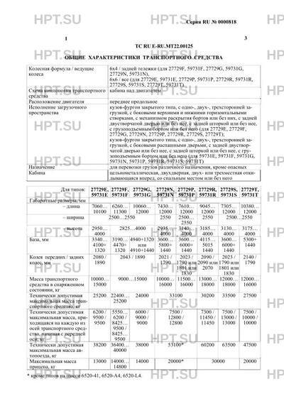 | Дополнительная информация | В случае превышения параметров, указанных в пунктах 2.1 и 2.2 приложения № 5 к техническому регламенту Таможенного союза «О безопасности колесных транспортных средств», для передви-жения транспортных средств по территории государств — членов Таможенного союза необходимо оформление специального разрешения. Транспортные средства: 27729E, 59731E изготовлены на шасси КАМАЗ тип 65111 модификации 65111-42, 65111-46; 27729F, 59731F изготовлены на шасси КАМАЗ тип 65115 модификации 65115-42, 65115-46, 65115-А4, 65115-L4; 27729G, 59731G изготовлены на шасси КАМАЗ тип 65117 модификации 65117-42, 65117-46, 65117-А4, 65117-L4; 27729N, 59731N изготовлены на шасси КАМАЗ тип 6520 модификации 6520-41, 6520-43, 6520-44, 6520-73, 6520-74, 6520-А4, 6520-К4, 6520-L4; 27729Р, 59731Р изготовлены на шасси КАМАЗ тип 6522 модификации 6522-40, 6522-41, 6522-43; 27729R, 59731R изготовлены на шасси КАМАЗ тип 65224 модификации 65224-43, 65224-44; 27729S, 59731S изготовлены на шасси КАМАЗ тип 65225 модификации 65225-43, 65225-44; 27729N, 59731T изготовлены на шасси КАМАЗ тип 6360 модификации 6360-73, 6360-74. |