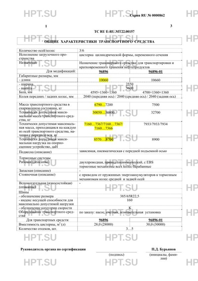 | Дополнительная информация | Данное одобрение типа транспортного средства является распространением одобрения типа транспортного средства № E-RU.МТ22.A.00825 с 08.12.2014 г., выданного до вступления в силу технического регламента таможенного союза «О безопасности колесных транспортных средств». При проезде транспортных средств по автомобильным дорогам общего пользования, а также по улицам городов и населенных пунктов, должны быть выполнены требования «Правил перевозки опасных грузов автомобильным транспортом». |