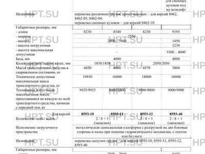 | Оборудование ТС | держатель запасного колеса, противооткатные упоры по заказу: второе запасное колесо (для версий 8462-10, 8593-20) |