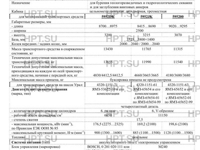 | Дополнительная информация | 5952?? изготовлен на шасси Урал тип 4320, модификации 4320-1151-61, -63, -71. 5952DK – коммерческое наименование (назначение транспортного средства): передвижная буровая установка ПБУ-2. 5952JK – коммерческое наименование (назначение транспортного средства): буровая установка ЛБУ-50. 595200 – коммерческое наименование (назначение транспортного средства): агрегат для заглубления винтовых анкеров АЗА-3. |