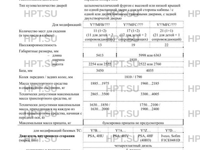| Оборудование ТС | отопитель салона, центральная блокировка дверей, подушки безопасности водителя и переднего пассажира (по заказу), кондиционер (по заказу), аврийно-вентиляционный люк, электропривод служебной двери (по заказу), подножка служебной двери или подножка служебной двери с электроприводом (по заказу), тахограф и система ГЛОНАСС (по заказу) |
