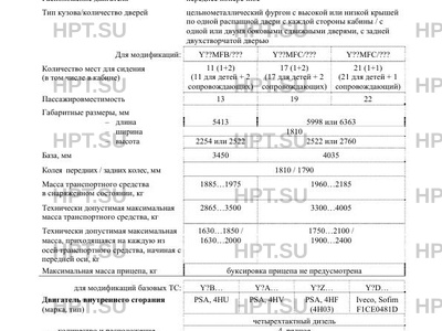 | Базовое ТС / Шасси | PEUGEOT Y / — |