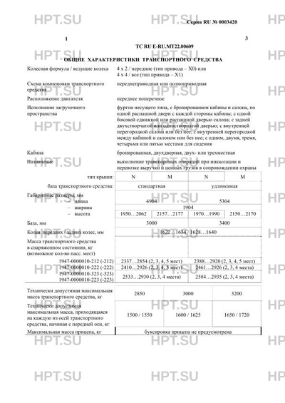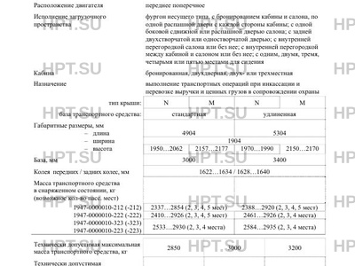| Оборудование ТС | отопитель салона; центральная блокировка дверей (по заказу); подушки безопасности водителя и передних пассажиров (по заказу); кондиционер (хладагент R134A); бронезащита кабины и отсека экипажа (по заказу – дополнительно грузового отсека) и пуленепробиваемые стекла, обеспечивающие защиту экипажа по классу Бр2 или Бр3 ГОСТ Р 50963-96; электромеханическая и/или механическая блокировка дверей; система пожаротушения в моторном отсеке; замки дверей с дистанционным управлением или без него; дифференцированная защита топливного бака и аккумуляторной батареи; переговорное устройство "улица-кабина"; бойницы; аварийный люк в крыше; предпусковой подогреватель двигателя; догреватель двигателя; электрообогрев ветрового бронестекла; противобуксовочная система (ASR); "электронная" система блокировки дифференциала (EDS); система обеспечения курсовой устойчивости (ESP); бортовой компьютер; электронное противоугонное устройство |