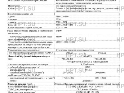 | Базовое ТС / Шасси | КАМАЗ тип 6520 |