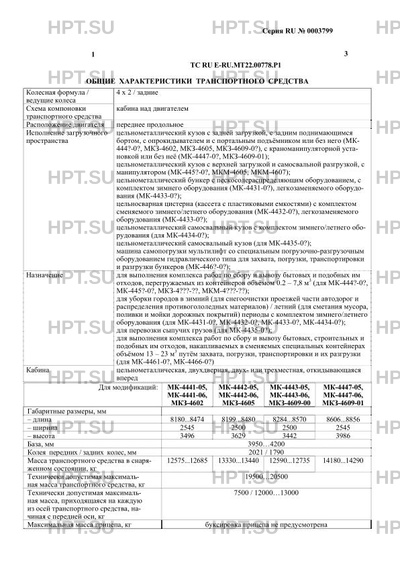 | Оборудование ТС | устройство вызова экстренных оперативных служб, устройство ограничения максимальной скорости (функцию устройства ограничения максимальной скорости выполняет электронный блок управления двигателем), дневные ходовые огни (для модификаций, имеющих официальное утверждение на основании Правил ЕЭК ООН № 48-04), коробка отбора мощности, клапан электромагнитный, проблесковые маячки для машин МК 4431-0?, МК 4432-0?, МК 4433-0?, МК 4434-0? выполняющие технологические операции в движении (2 шт.), по заказу: предпусковой подогреватель двигателя, кондиционер (хладагент R134A), дневные ходовые огни (кроме модификаций, имеющих официальное утверждение на основании Правил ЕЭК ООН № 48-04), передние противотуманные фары (кроме модификаций, имеющих официальное утверждение на основании Правил ЕЭК ООН № 48-04), система автоматического управления технологическим оборудованием, система видеонаблюдения, система дезинфекции |