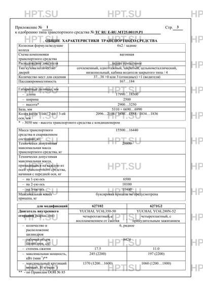 | ДВС | YUCHAI, YC6L350-50 YUCHAI, YC6L280N-52 четырехтактный, с воспламенением от сжатия четырехтактный, с принудительным зажиганием |