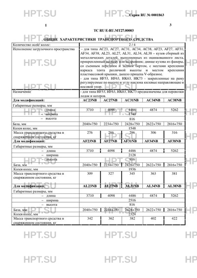 | Дополнительная информация | Данное Одобрение типа транспортного средства является распространением Одобрения типа транспортного средства № E-RU.МТ27.B.00013.П1, выданного до вступления в силу технического регламента Таможенного союза «О безопасности колесных транспортных средств». |