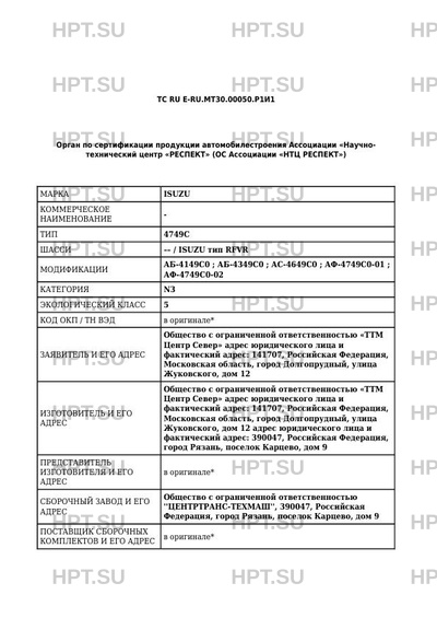 ТС RU E-RU.МТ30.00050.Р1И1