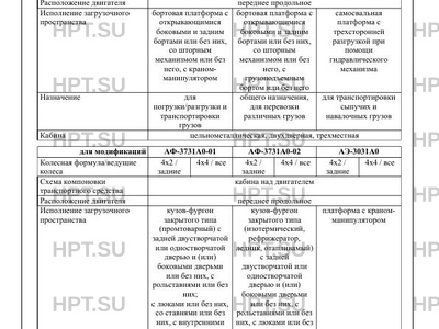 | Исполнение загрузочного пространства | бортовая платформа с открывающимися боковыми и задним бортами или без них, со шторным механизмом или без него, с краномманипулятором ортами или без них, со шторным механизмом или без него, с краном-манипулятором бортовая платформа с открывающимися боковыми и задним бортами или без них, со шторным механизмом или без него, с грузоподъемным бортом или без него или без них, со шторным механизмом или без него, с грузоподъемным бортом или без него самосвальная платформа с трехсторонней разгрузкой при помощи гидравлического механизма онней разгрузкой при помощи гидравлического механизма кузов-фургон закрытого типа (промтоварный) с задней двустворчатой или одностворчатой дверью и (или) боковыми дверьми или без них, с рольставнями или без них; с люками или без них, со ставнями или без них, с внутренними перегородками или без них, с грузоподъемным бортом или без него ли одностворчатой дверью и (или) боковыми дверьми или без них, с рольставнями или без них; ренними перегородками или без них, с грузоподъемным бортом или без него кузов-фургон закрытого типа (изотермический, рефрижератор, ледник, отапливамый) с задней двустворчатой или одностворчатой дверью и (или) боковыми дверьми или без них, с рольставнями или без них, с люками или без них; со ставнями или без них, с внутренними перегородками или без них, с грузоподъемным бортом или без него чатой или одностворчатой дверью и (или) боковыми дверьми или без них, с рольставнями или без них, с люками или без них; регородками или без них, с грузоподъемным бортом или без него платформа с краномманипулятором рма с краном-манипулятором платформа стационарная с выдвижными трапами, или платформа подъемно-сдвижная при помощи гидравлического механизма и платформа подъемно-сдвижная при помощи гидравлического механизма кузов-фургон закрытого типа, с задней двустворчатой или одностворчатой дверью и (или) боковыми дверьми или без них, с рольставнями или без них, с люками или без них; с внутренней перегородкой или без нее, с 4…6 пассажирскими сиденьями в переднем отсеке (используются только во время стоянки) или без них дверью и (или) боковыми дверьми или без них, с рольставнями или без них, с люками или без них; и сиденьями в переднем отсеке (используются только во время стоянки) или без них |