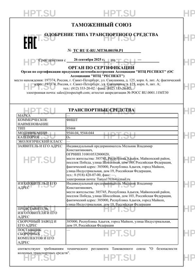 Номер документа | ТС RU Е-RU.МТ30.00150.Р1 |