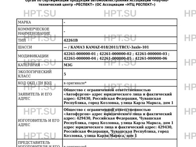 | Модификации | 42261-000000-01 ; 42261-000000-02 ; 42261-000000-03 ; 42261-000000-04 ; 42261-000000-05 ; 42261-000000-06 |