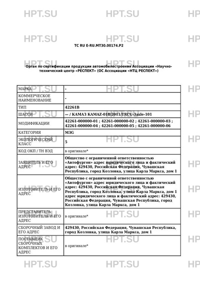 | Номер документа | ТС RU Е-RU.МТ30.00174.Р2 |