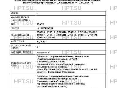 Категория ТС NMR85E, NMR85H N1 ISUZU NMR NMS85E, NMS85H N1G N1, N1G