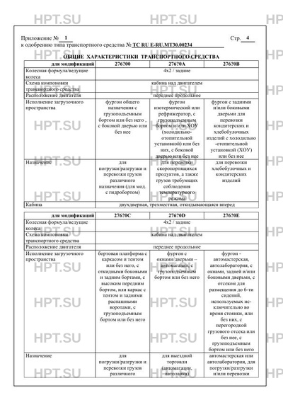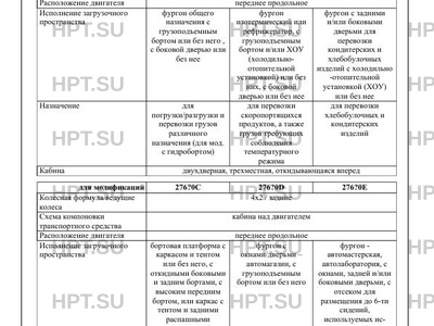Исполнение загрузочного пространства фургон общего назначения с грузоподъемным бортом или без него , с боковой дверью или без нее фургон изотермический или рефрижератор, с грузоподъемным бортом и/или ХОУ (холодильноотопительной установкой) или без них, с боковой дверью или без нее фургон c задними и/или боковыми дверьми для перевозки кондитерских и хлебобулочных изделий с холодильно -отопительной установкой (ХОУ) или без нее бортовая платформа с каркасом и тентом или без него, с откидными боковыми и задним бортами, с высоким передним бортом, или каркас с тентом и задними распашными воротами, с грузоподъемным бортом или без него фургон с окнами/дверьми - автомагазин, с грузоподъемным бортом или без него фургон - автомастерская, автолаборатория, с окнами, задней и/или боковыми дверьми, с отсеком для размещения до 6-ти сидений, используемых исключительно во время стоянки, или без них, с перегородкой грузового отсека или без нее, с грузоподъемным бортом или без него бортовая платформа с краномманипулятором (КМУ) специальная платформа для транспортировки автомобилей с краном -манипулятором (КМУ) или без него автогидроподъемник (АГП) фургон с окнами/дверьми для перевозки животных, с грузоподъемным бортом или без него фургон с окнами/дверьми для временного проживания (автодом) фургон с окнами/дверьми, с отсеком для размещения до 6-ти сидений, используемых исключительно во время стоянки, или без них, с перегородкой грузового отсека или без нее, с бортовой платформой и/или с краномманипулятором (КМУ) самосвальная платформа с двух или трехсторонней разгрузкой, с краном-манипулятором (КМУ) или без него фургон с окнами/дверьми медицинской службы, медицинский комплекс, с грузоподъемным бортом или без него