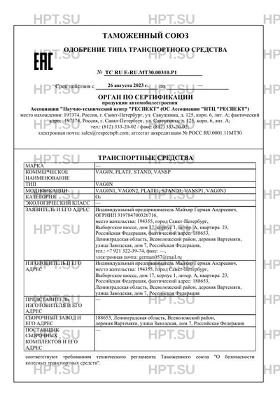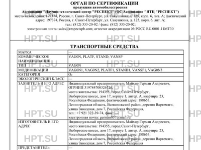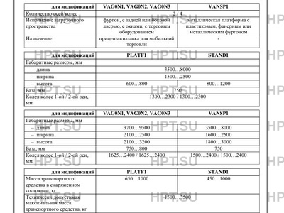 | Коммерческое наименование | VAG0N, PLATF, STAND, VANSP |