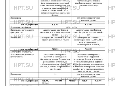 | Исполнение загрузочного пространства | металлическая бортовая платформа с передним несъемным бортом, задними и боковыми откидными бортами, (или с распашными воротами), или с надставными бортами, или с металлическим каркасом и тентом, с тентом или без него, с передним защитным щитом или без него металлический самосвальный кузов полукруглого сечения, с откидным задним бортом, с гидроцилиндром подъема платформы на одну сторону, с тентом или без него металлическая платформа с кониками, с передним защитным щитом металлическая платформа с контейнерными замками или без них металлическая бортовая платформа с откидными боковыми и задним бортами или распашными воротами, со съёмным каркасом и тентом или без них, с тентом шторного типа или без него металлическая бортовая платформа с передним несъемным бортом, с задними и боковыми откидными бортами или с распашными воротами, или с надставными бортами, с тентом или без него, с гидроцилиндрами подъема на две стороны |